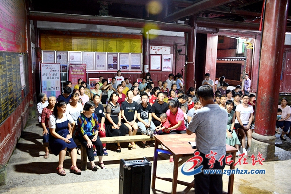 ? ? 8月7日晚,寧化縣曹坊鎮農村講師團來到上曹村曹氏家廟進行宣講,70余名群眾到場聆聽。