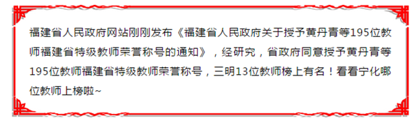 寧化兩位教師榮獲省特級教師稱號