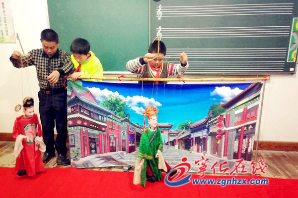 ? ? 近年來,寧化縣積極保護(hù)非物質(zhì)文化遺產(chǎn),傳承與發(fā)展木偶戲。2016年9月,水茜中心學(xué)校正式將木偶戲引進(jìn)校園,充分利用當(dāng)?shù)厥⑿锌图夷九紤虻膬?yōu)勢,定期邀請民間藝人進(jìn)校指導(dǎo),排練適合學(xué)生表演的木偶戲。2017年1月,三明市第三屆少兒春節(jié)聯(lián)歡晚會上,水茜中心學(xué)校選送的提線木偶戲《過關(guān)》獲金獎。今年7月,寧化水茜木偶戲被列入三明市第五批非物質(zhì)文化遺產(chǎn)代表性項(xiàng)目名錄。