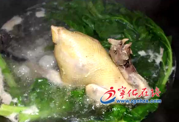 ? ? “長命菜”顧名思義,食之長命百歲,健康長壽。每至年三十,人們在準備祭祖和年飯中,白天就把宰好、洗凈后的雞、豬肉等整只、整塊放進鍋中煮熟。在滾燙的湯中投入洗凈的經(jīng)霜的又嫩又大的芥菜,芥菜不能切碎,要整片煮熟,文火慢慢煮。當芥菜飄香,熱氣騰騰時就可起鍋。起鍋后,在雞上加一條雞腸和一片長命菜,裝好放在祖宗牌前敬神,之后就可趁熱食用。食用時,只能撕開而不用切。芥菜盡吸油膩,清淡口味,食之細嫩滑爽,芳香滋潤。