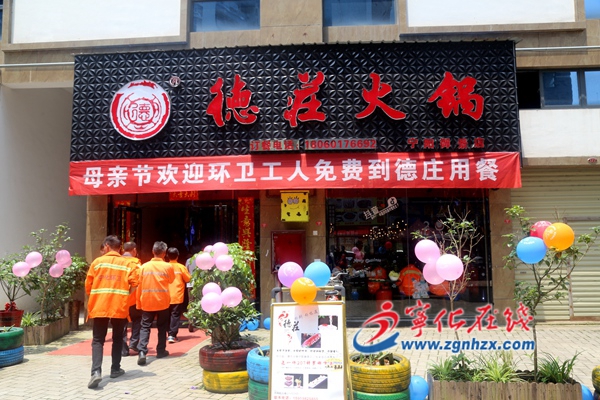 ? ? 5月12日,母親節當天,寧化德莊火鍋寧陽御景店邀請在城區工作的環衛工人免費到店吃一餐熱騰騰的火鍋,感謝他們對城市衛生環境辛勤的付出。120余名環衛工人到店用餐。