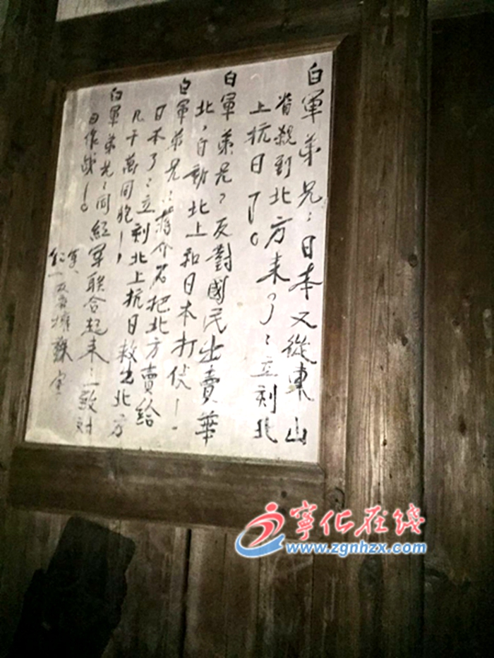 紅軍宣傳員寫一個字就教他念一個字。他清楚地記得,一次,紅軍在他家廳堂墻上寫完“粉碎敵人四次圍剿”后,又帶他去井坎邊的張耀雷家門口墻壁上寫上“擴大一百萬鐵的工農紅軍”等標語。