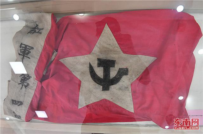 寧化縣革命紀念館收藏的紅軍使用過的軍旗。 福建日報記者 林輝 攝