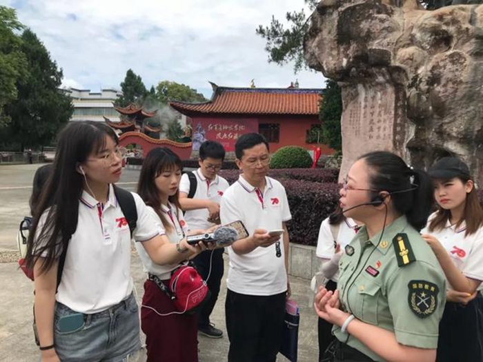 央廣記者危瑤(左一)采訪寧化縣革命紀念館原館長陳端
