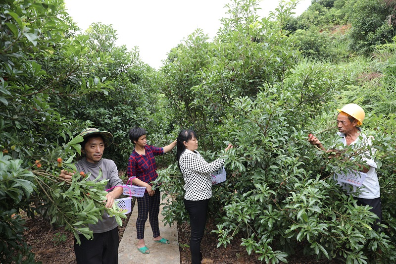 楊梅熟了,紅彤彤的果實掛在枝頭,令人垂涎欲滴。6月20日,寧化縣河龍鄉下伊村福樂緣種植基地,五名殘疾人正忙著采摘楊梅。