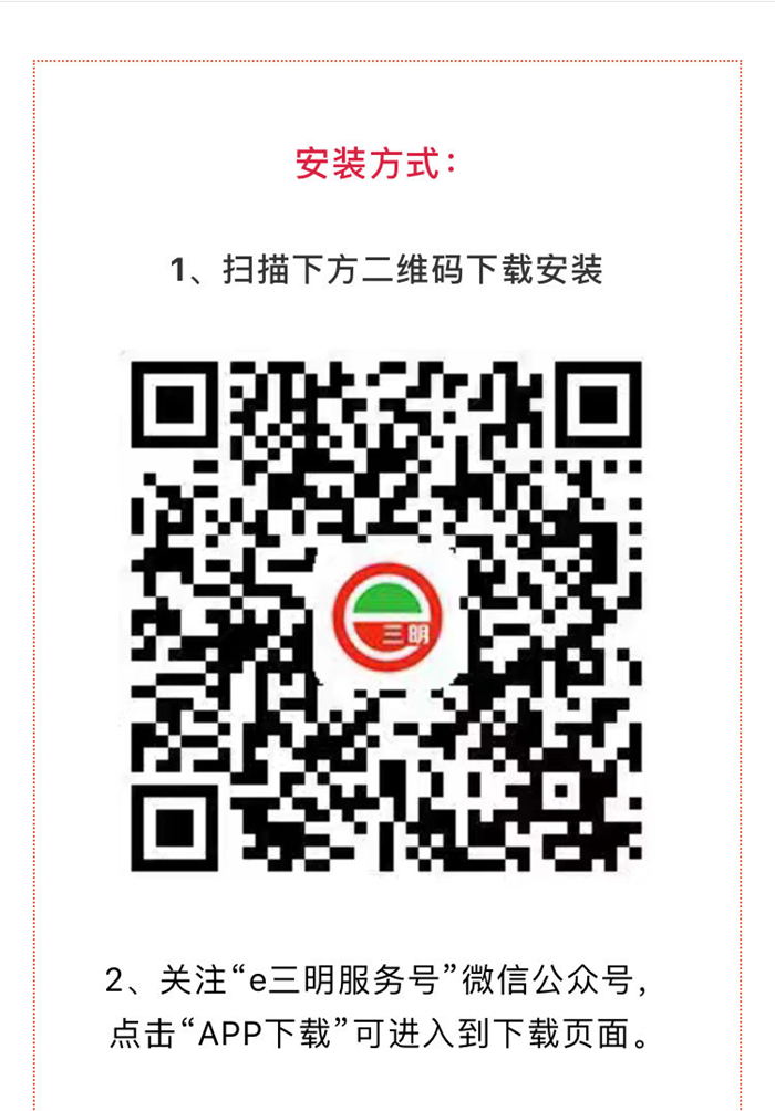 ? ? 目前,e三明APP(安卓版)、微信公眾號“e三明服務號”已上線運行,廣大群眾可以通過掃描圖片下載使用APP、關注公眾號。(肖云)