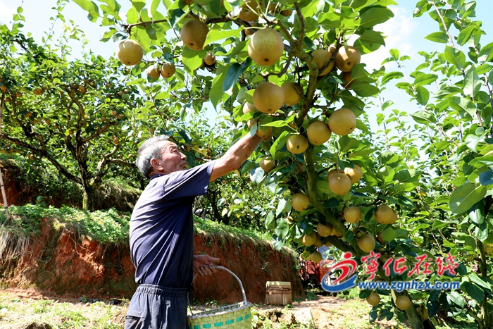 ? ? 7月22日,寧化縣中沙鄉廖家村的梨園里,果農余盛根頂著烈日,忙著采摘黃花梨(見圖)。他種了20畝黃花梨,2017年脫貧,去年賣梨收入6萬多元。