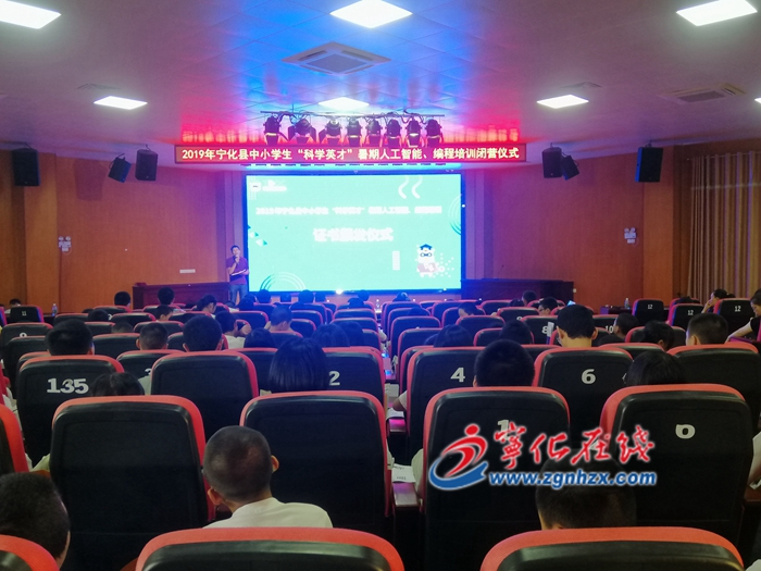? ? 8月19日,由寧化縣教育局和世紀(jì)海航教育科技集團(tuán)聯(lián)合舉辦的2019年寧化縣中小學(xué)生“科學(xué)英才”人工智能、編程暑期培訓(xùn)閉營(yíng)儀式在寧化一中舉行,148名中小師生和學(xué)員家長(zhǎng)等參加閉營(yíng)儀式。
