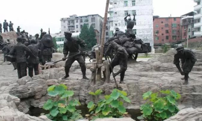 △中央蘇區反“圍剿”紀念園紅軍幫助群眾清理蓮塘的雕塑