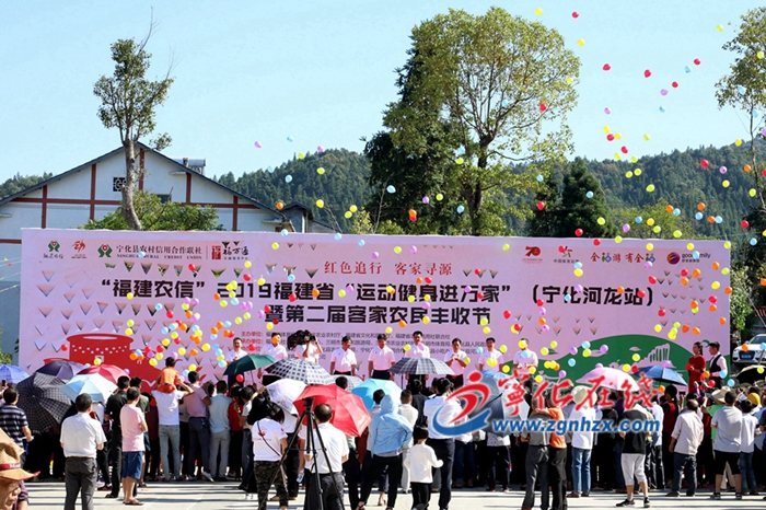 ? ? 9月21日,“福建農信”2019年福建省“運動健身進萬家”(寧化河龍站)暨第二屆客家農民豐收節在寧化縣河龍鄉下伊村舉行。活動吸引了上千名游客在這里體驗客家民俗,品嘗客家美食,欣賞客家美景。