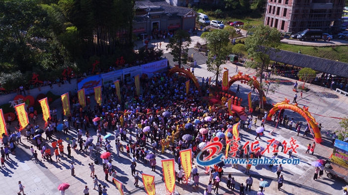 ? ? 14時30分,豐收節在開場鼓舞《歡慶盛世》中拉開序幕,情景舞蹈《讓中國更美麗》、群舞《舂米飄香》、歌伴舞《不忘初心》等精彩節目依次上演。在客家豐收祭儀式上,長老們表演豐收祭,祈福發五彩糧米?!坝邪?!好啊!”游客們紛紛跟著長老祈福,用帽子、衣襟搶裝長老發的五彩米。