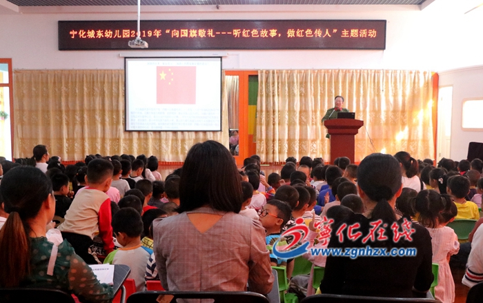 ? ? 9月26日,寧化縣城東幼兒園開展“向國旗敬禮---聽紅色故事,做紅色傳人”主題活動,大班幼兒及教師300余人參加活動?;顒友埩嗽谥性竭吘匙孕l反擊保衛邊疆作戰中榮立三等功的解放軍伊世錚,講述“一家三代四人參軍二人參戰”的光輝事跡。