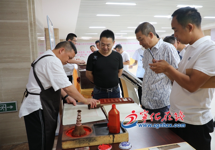 ? ? 開幕式結束后,參會人員紛紛走進族譜展廳,翻閱族譜,了解各大姓氏淵源。寧化七中50多名師生也到場參觀。隨后,木活字印刷術傳承人邱恒勇、巫松根師徒現場展示木活字印刷。寧化縣客家譜牒協會會長王立華介紹了網上族譜的查閱流程。