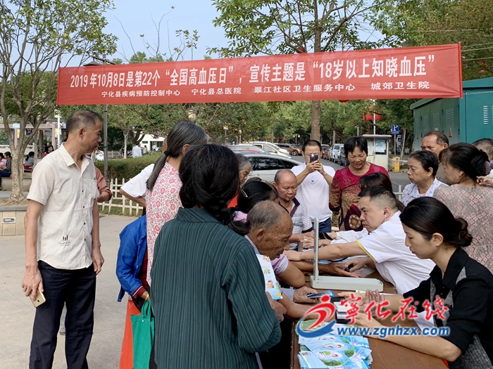? ? 10月8日是第22個“全國高血壓日”。寧化縣疾控中心與縣總醫院、翠江社區衛生服務中心、城郊衛生院共同開展宣傳活動。