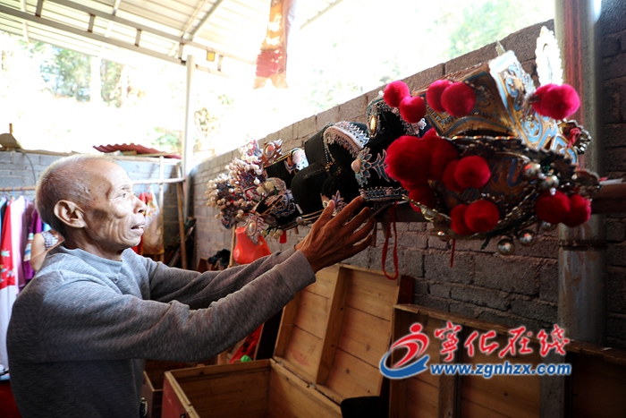為了讓觀眾獲得更好的舞臺(tái)體驗(yàn),巫英章添置了演出服、道具及LED顯示屏,無(wú)奈還是留不住觀眾。“舞臺(tái)上,帝王將相的盔甲和袍服,‘十蟒十靠’我全有。”巫英章感慨道,盡管資金不足,他還是想方設(shè)法添置裝備,有的道具如槍、棒都是自己做的。