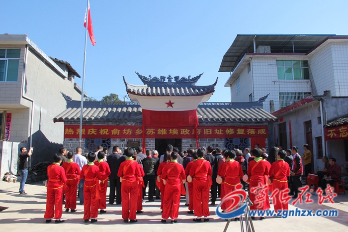 在鑼鼓和鞭炮聲中,安樂鎮相關負責人和劉坊村俞氏宗親共同為俞坊鄉蘇維埃政府舊址揭牌。