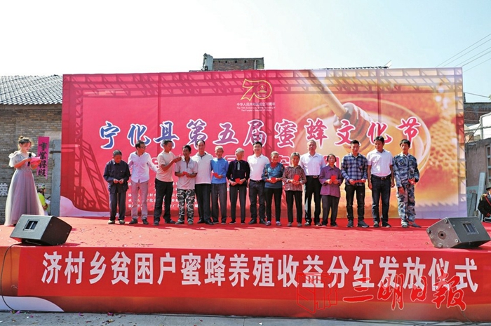 寧化濟村鄉貧困戶蜜蜂養殖收益分紅發放儀式。 (賴全平攝)