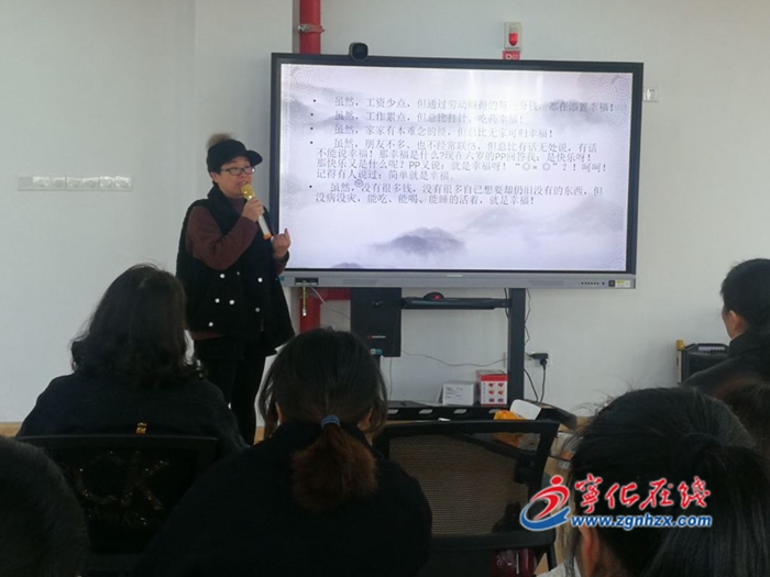 此次活動分靜默省心、歌中尋禮、經典誦讀、幸福分享、發善心、向德鞠躬、送吉祥等七個環節。郭寧寧老師與教師分享交流了工作經驗,暢談自己對教師幸福感的理解,勉勵老師們做一個有幸福感的教師。 (李麗)