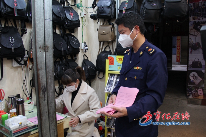 執法人員先后到全縣各街道的門店,對“七類營業場所”外仍在經營的經營業主進行勸導,并發放縣應對新型冠狀病毒感染的肺炎疫情工作指揮部令(第6號)關于實行疫情防控十五條措施的通告,號召各經營業主積極履行社會責任,主動支持配合開展疫情防控工作。