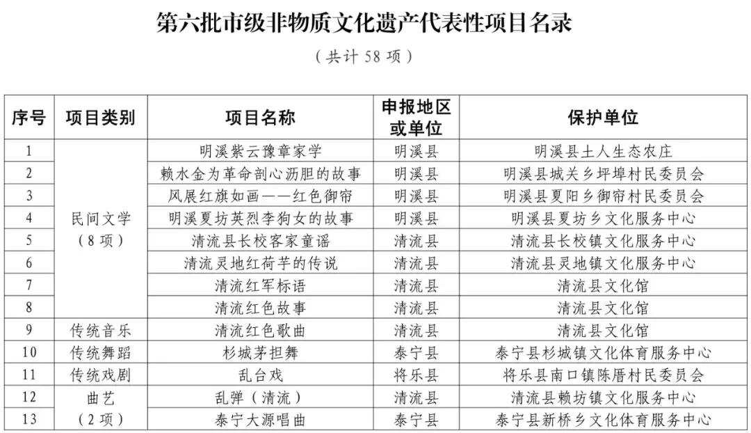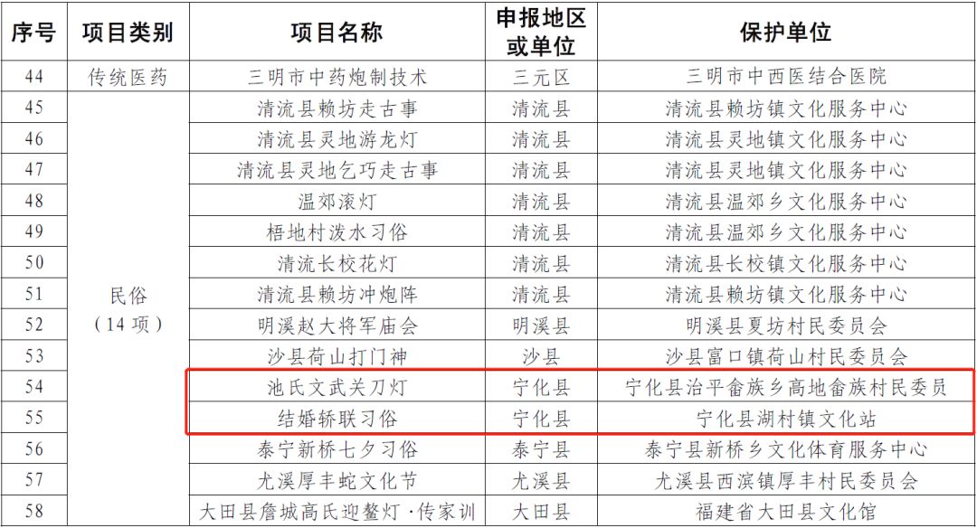 3月9日,三明市公布由市文化和旅游局組織專家評(píng)審后提出的第六批市級(jí)非物質(zhì)文化遺產(chǎn)代表性項(xiàng)目名錄(共計(jì)58項(xiàng)),一起來(lái)看看寧化有哪些項(xiàng)目入選啦!