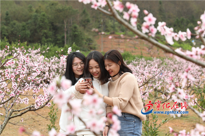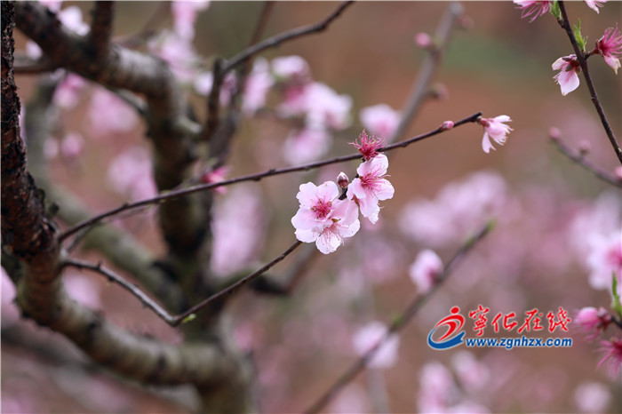 3月16日,在寧化湖村鎮陳家村桃園里,放眼望去,只見漫山遍野的粉色桃花蓓蕾初放,互相簇擁著,一朵朵、一枝枝、一簇簇,美不勝收,吸引了許多游客前來賞花休閑。
