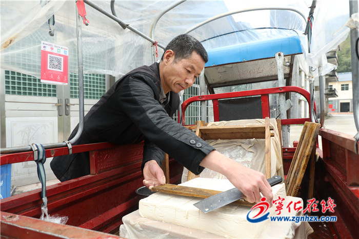 吆喝聲來自濟村鄉三村村村民黃沾華,在濟村一帶,他也算小有名氣。不僅因為做的豆腐新鮮,而且身殘志堅,在鄉村干部的幫扶下,靠著一塊塊豆腐,撐起了脫貧致富夢。