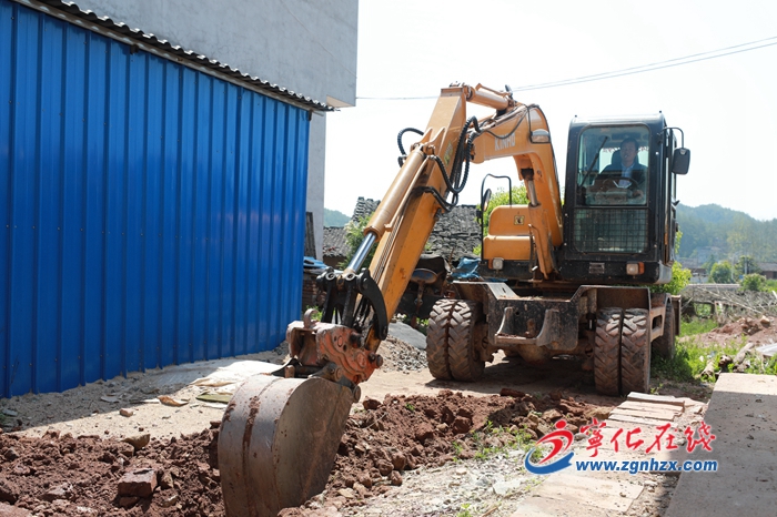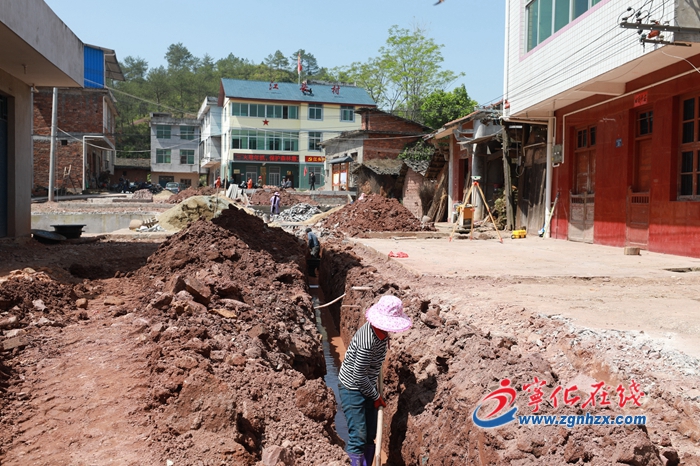 石壁鎮(zhèn)江頭村,工人在挖溝。