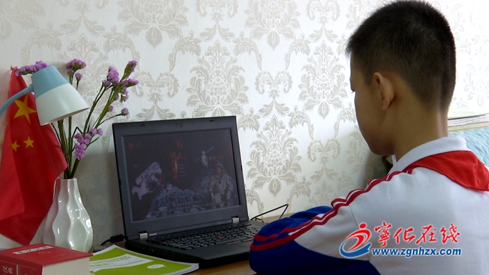 當(dāng)天,寧師附小學(xué)生張鈺康早早守在電腦前,同步觀看中國航天日線上啟動(dòng)儀式。寧師附小另外一名學(xué)生張賀當(dāng)天也和家人、同學(xué)在家里收看了航天知識專題宣傳片。