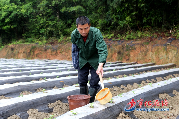 近日,在寧化縣曹坊鎮石牛村辣椒種植基地,一株株辣椒苗迎著陽光向上生長。貧困戶賴國清正在給辣椒苗澆水,檢查辣椒苗的生長情況。