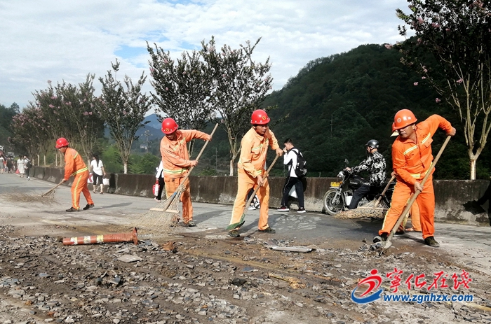 工人清理路面。劉秋華 攝