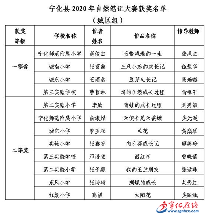 此次大賽得到廣大青少年的積極響應和參與,將他們觀察到的自然現象通過圖文記錄了下來。寧化“雙有”組委會共收到300余幅作品,經過專業評審,分別評出城區組、鄉鎮組一等獎4名,二等獎8名和優秀輔導獎。