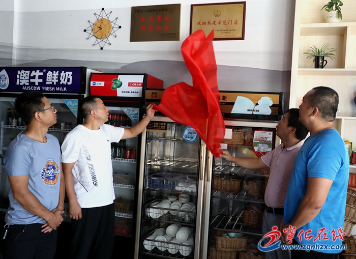 7月22日,寧化縣雙擁共建領(lǐng)導(dǎo)小組辦公室相關(guān)負(fù)責(zé)人授予城區(qū)三五成群生態(tài)餐廳“雙擁共建示范門店”,成為全縣首家掛牌商家。
