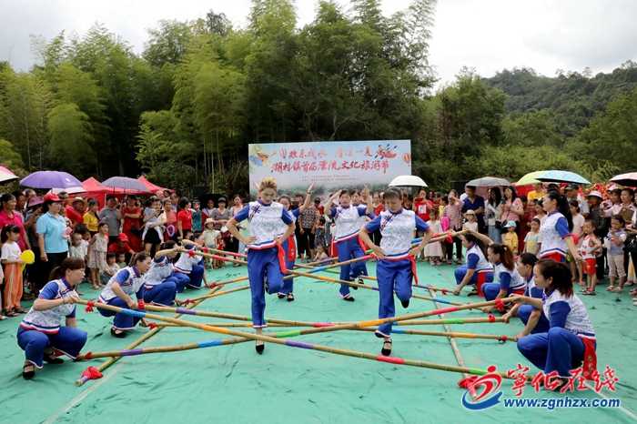 水上清涼漂流,廣場鼓樂喧天。文藝匯演在《舞龍舞獅》中拉開序幕,舞蹈《茶香中國》《哈尼寶貝》、小品《濟公:鞋兒破帽兒破》、獨唱《寧夏》等節目精彩紛呈,極具欣賞性,博得臺下陣陣掌聲。隨著熱烈歡快的節奏,身著民族服飾的青年婦女紛紛上場,表演輕快的《竹竿舞》,在竹竿中躍動舞蹈,將活動再一次推向高潮,觀眾一片歡騰。匯演前后,主辦方還組織了大型的舞龍舞獅表演。