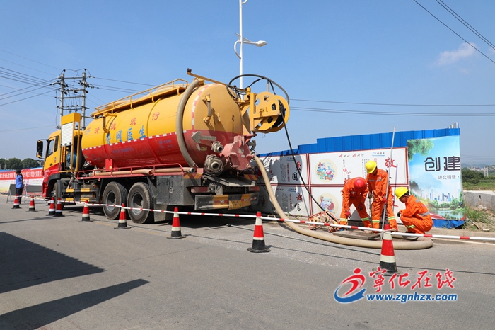 9月3日,在寧化城區西大路雨污水管網清淤溯源排查項目施工現場,施工單位正組織工作人員操作清洗吸污車,對路段管道清淤,掏出雜物。