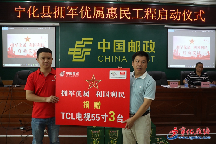 9月7日,寧化縣退役軍人事務局、福建覽東糧油貿易有限公司、TCL集團三明分部、中國郵政集團寧化公司聯合舉行擁軍優屬惠民工程啟動儀式。各鄉鎮、華僑農場退役軍人服務站負責人,退役軍人及現役軍人家屬代表參加捐贈活動。
