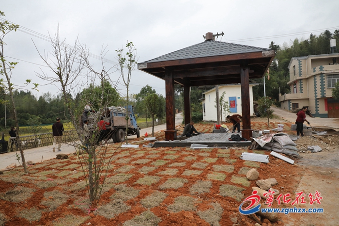 10月22日,在河龍鄉大洋梯田(福建嶂)生態旅游開發項目施工現場,工人正在進行休息平臺的地板硬化作業,現場一片繁忙。