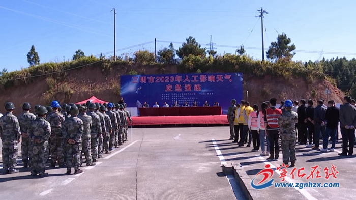 11月12日,三明市在寧化開展市2020人工影響天氣應(yīng)急演練。省氣象局副局長張長安、省公安廳治安管理總隊(duì)總隊(duì)長陳小兵、副縣長黃棟等領(lǐng)導(dǎo)參加演練。