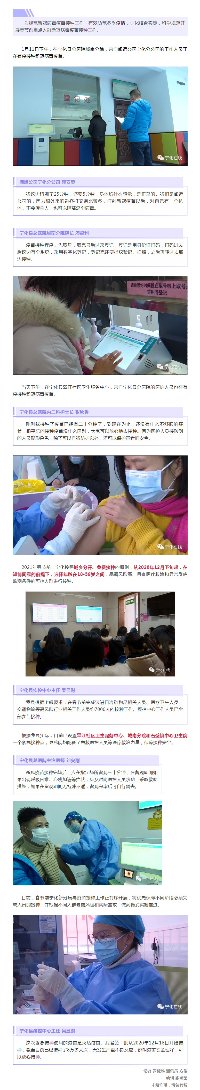 “感謝國家政策,打疫苗好啊,還是免費的。”近日,寧化縣安樂鎮夏坊村58歲的王先生在安樂衛生院接種點接種了新冠疫苗。截至4月7日,安樂鎮已有745人接種了新冠疫苗。