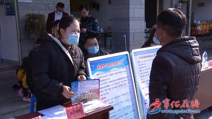 1月20日,寧化縣城南鎮(zhèn)舉行服務(wù)園區(qū)企業(yè)用工專場招聘會,吸引眾多人才前來咨詢求職。