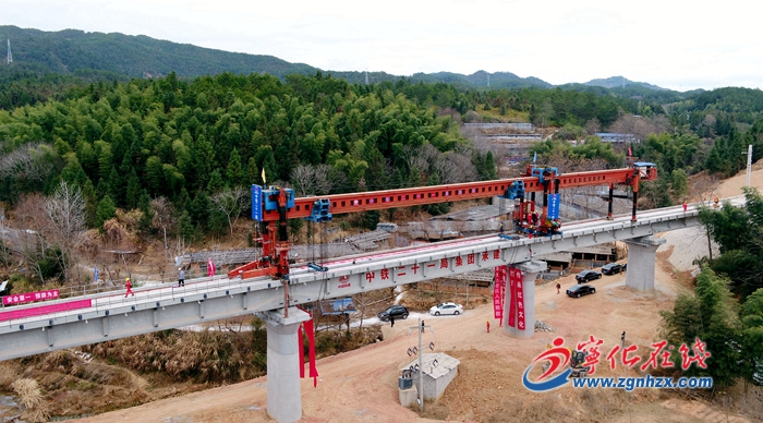 1月26日9時30分,隨著架橋機將最后一孔32米長、140噸重的梁片順利放下,寧化三角坪大橋正式合攏。至此,由東南沿海鐵路福建公司主辦、中鐵二十一局承建的興泉鐵路興寧段T梁的制、運、架工程施工任務圓滿完成。