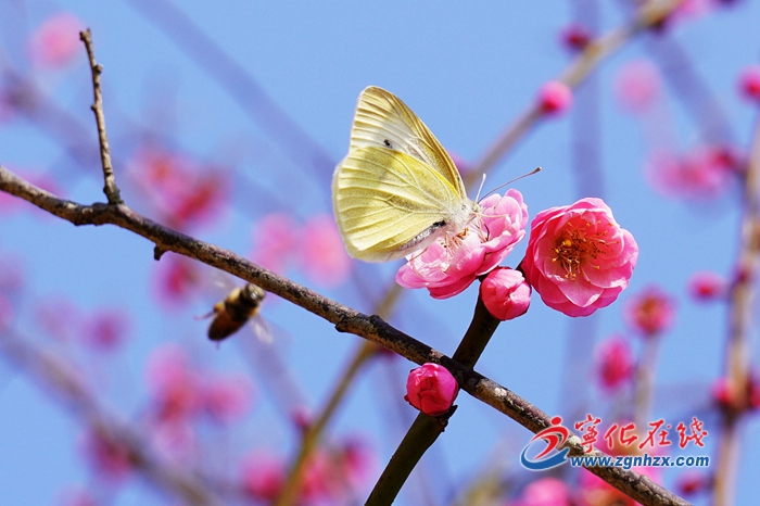 立春過后,在溫暖的春風吹拂下,寧化縣城區福寧橋邊朵朵紅梅悄然綻放,遠看仿佛粉紅的云霞一般,美不勝收。湊近時,陣陣花香撲鼻而來,沁人心脾。蜜蜂蝴蝶也聞香而來,在花間翩翩飛舞,好不熱鬧。(記者?張凌波攝)
