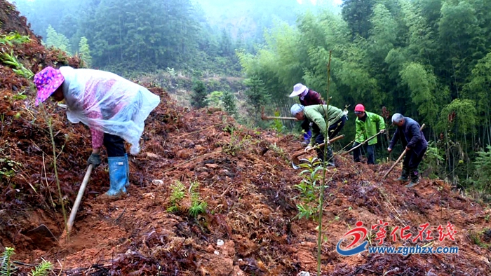 3月3日,寧化縣方田鄉朱王村的山場上,工人們揮舞著手中的鋤頭,挖坑、培土、踩實,栽種下木荷、馬卦木、楓香等多種樹苗。