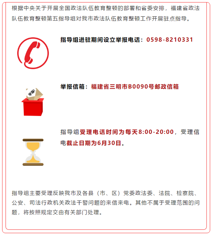 3月14日,寧化縣召開政法隊伍教育整頓動員部署會。會議深入學習貫徹習近平總書記重要講話重要指示批示精神,貫徹落實全國、全省、全市政法隊伍教育整頓動員部署會議精神,安排部署我縣政法隊伍教育整頓工作。縣委書記、縣政法隊伍教育整頓領導小組組長汪志紅作動員部署,縣委常委、政法委書記、縣政法隊伍教育整頓領導小組副組長伍民主持會議??h政法隊伍教育整頓領導小組及其辦公室成員、縣政法各單位領導班子成員參加會議。