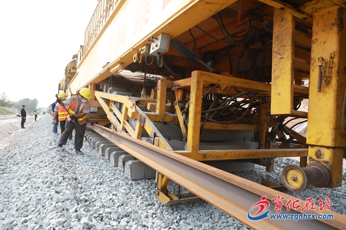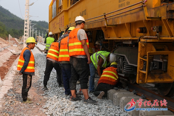 人民網福州3月20日電 3月19日,在福建三明寧化縣的興泉鐵路寧化段何包大橋鋪軌施工現場,只見一塊塊軌枕從鋪軌機中緩緩“吐”出之后,兩條鋼軌輕輕地落在軌枕上,布枕和鋪軌一次成型。據了解,目前該項目正以每天3公里的速度推進,預計3月底前會完成寧化段軌道鋪設任務。