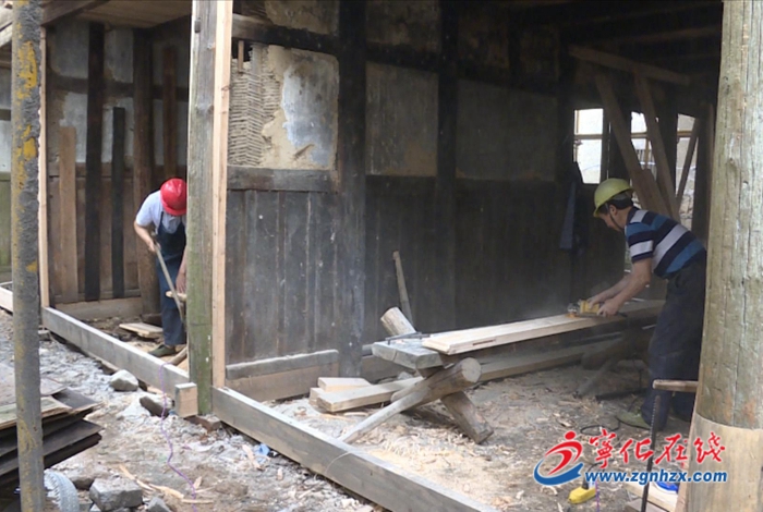 近日,寧化縣水茜鎮沿溪村甯家大院內,工人正忙于修繕和加固破損的梁柱和屋頂,現場一片繁忙。