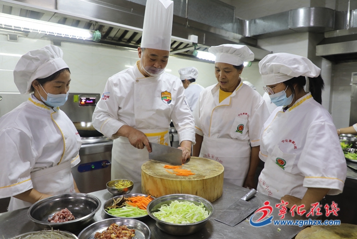 近日,寧化客家小吃第206期免費培訓(xùn)班培訓(xùn)現(xiàn)場,“中國烹飪大師”孫福安正在指導(dǎo)28名學(xué)員練習(xí)切菜的刀工,學(xué)習(xí)煮粉皮、炒粉條。