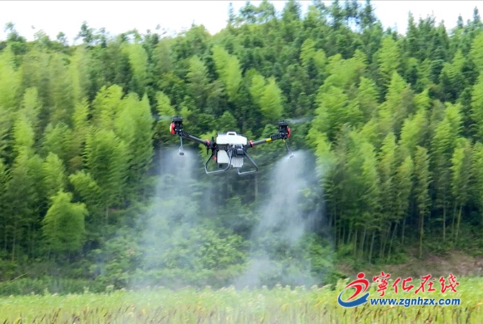 在農用無人機水稻直播中,無人機均勻地把稻種播撒到稻田里。這種栽培方式具有不受地形限制、節約人力、效率高的特點。