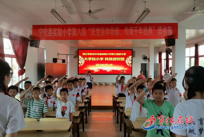 7月9日,閩江學院物理與電子信息工程學院25名師生走進寧化實驗小學,開展“大手拉小手·科技進校園”暑期夏令營活動。