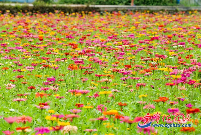8月,濟村鄉(xiāng)武層村的百日草進入盛花期,遠遠望去,鮮花錯落有致、高低起伏,與五角星景觀棧道相映成趣,吸引游客在拍照打卡。