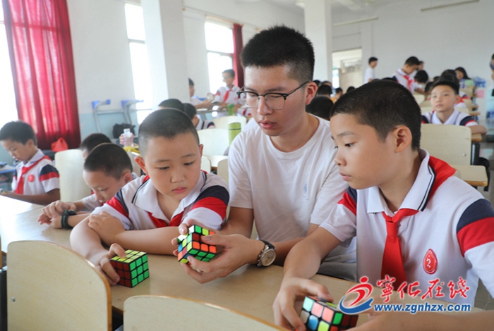 在閉營儀式上,閩江學(xué)院志愿者和參訓(xùn)學(xué)員現(xiàn)場表演了精彩的文藝節(jié)目,學(xué)員上臺參加魔方還原競速比賽,從中決出“十佳魔方小達人”。閩江學(xué)院物理與電子信息工程學(xué)院與寧化實驗小學(xué)、寧化一中初中部、寧化一中連岡分校、縣科協(xié)分別簽約,在這4個單位建立“閩江學(xué)院思政教育實踐基地”。